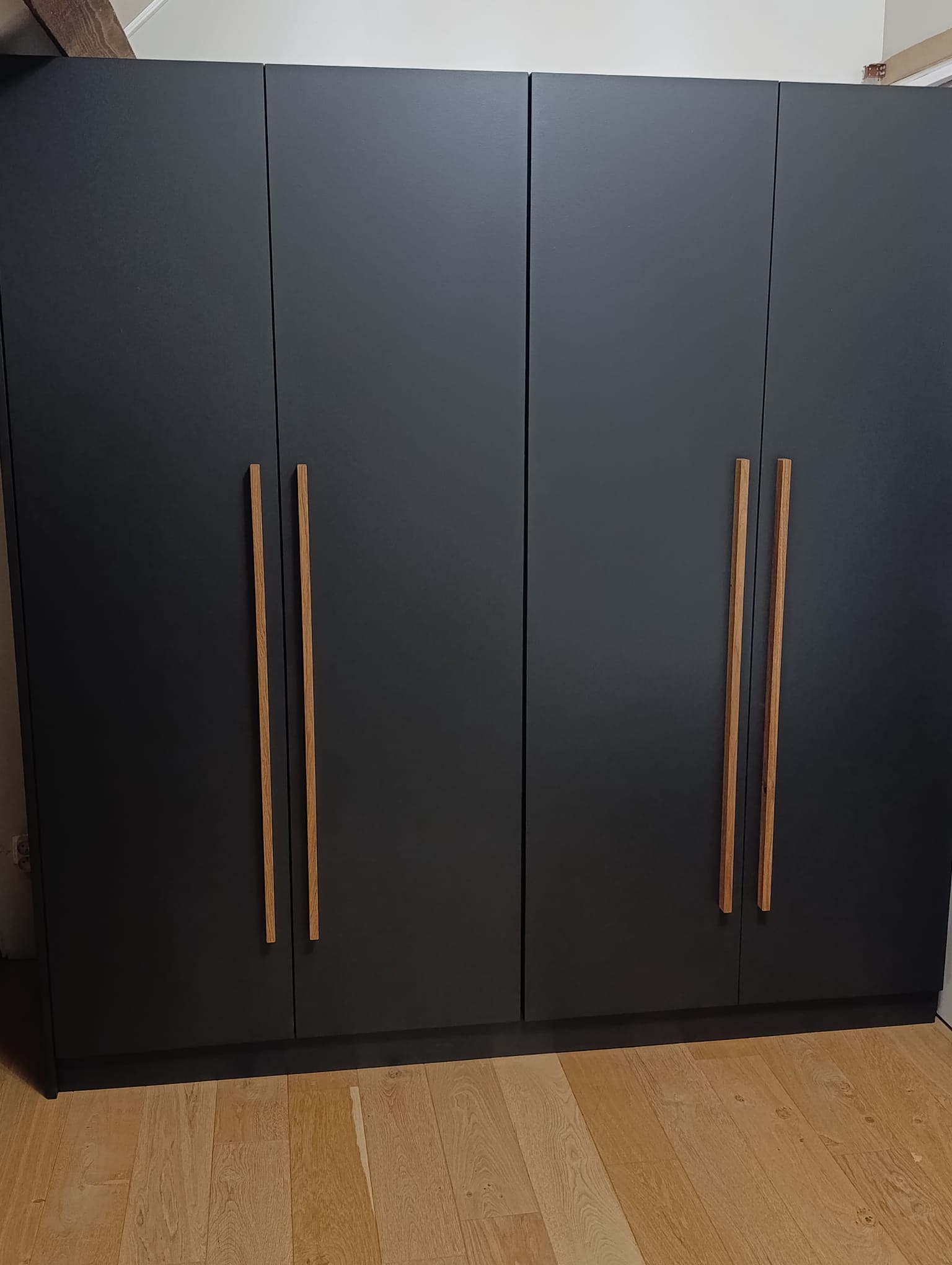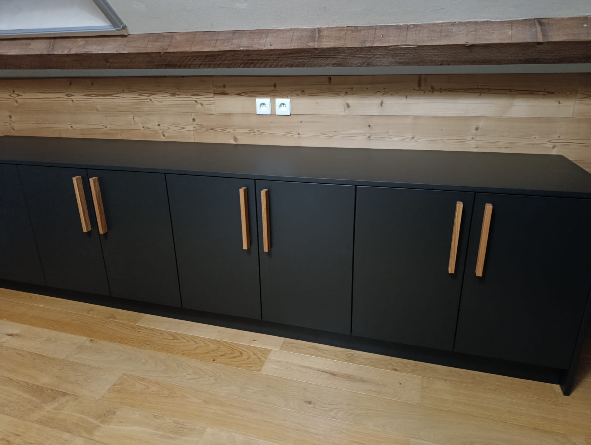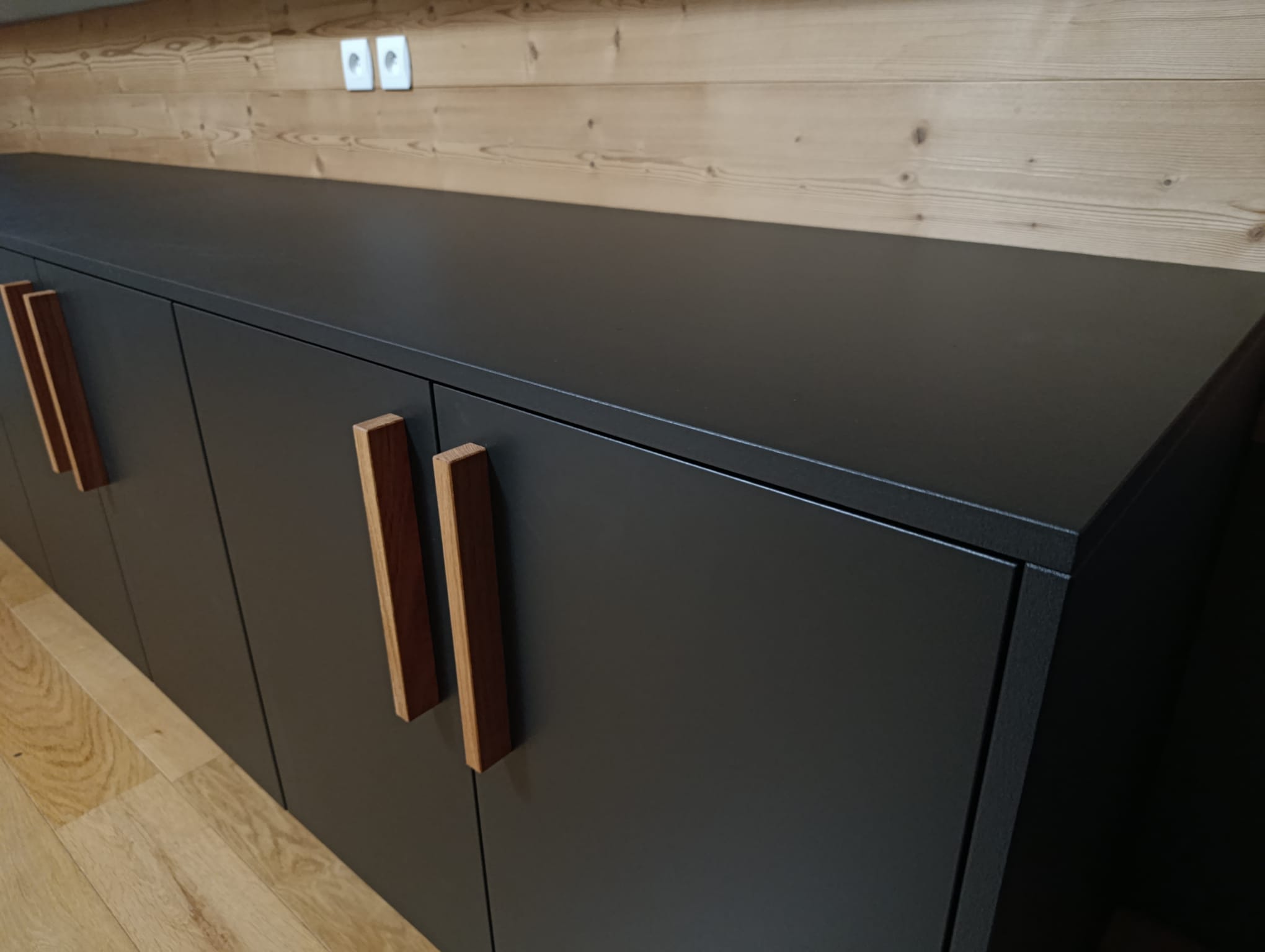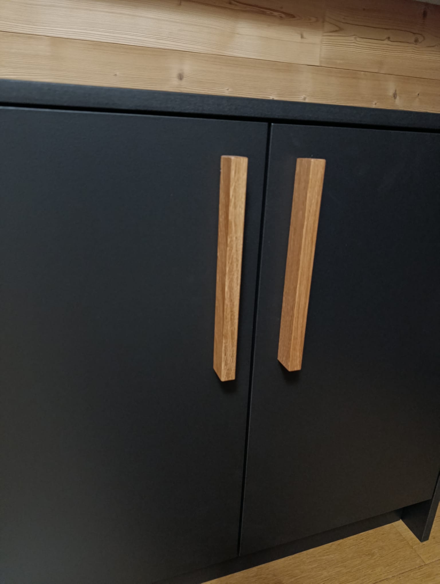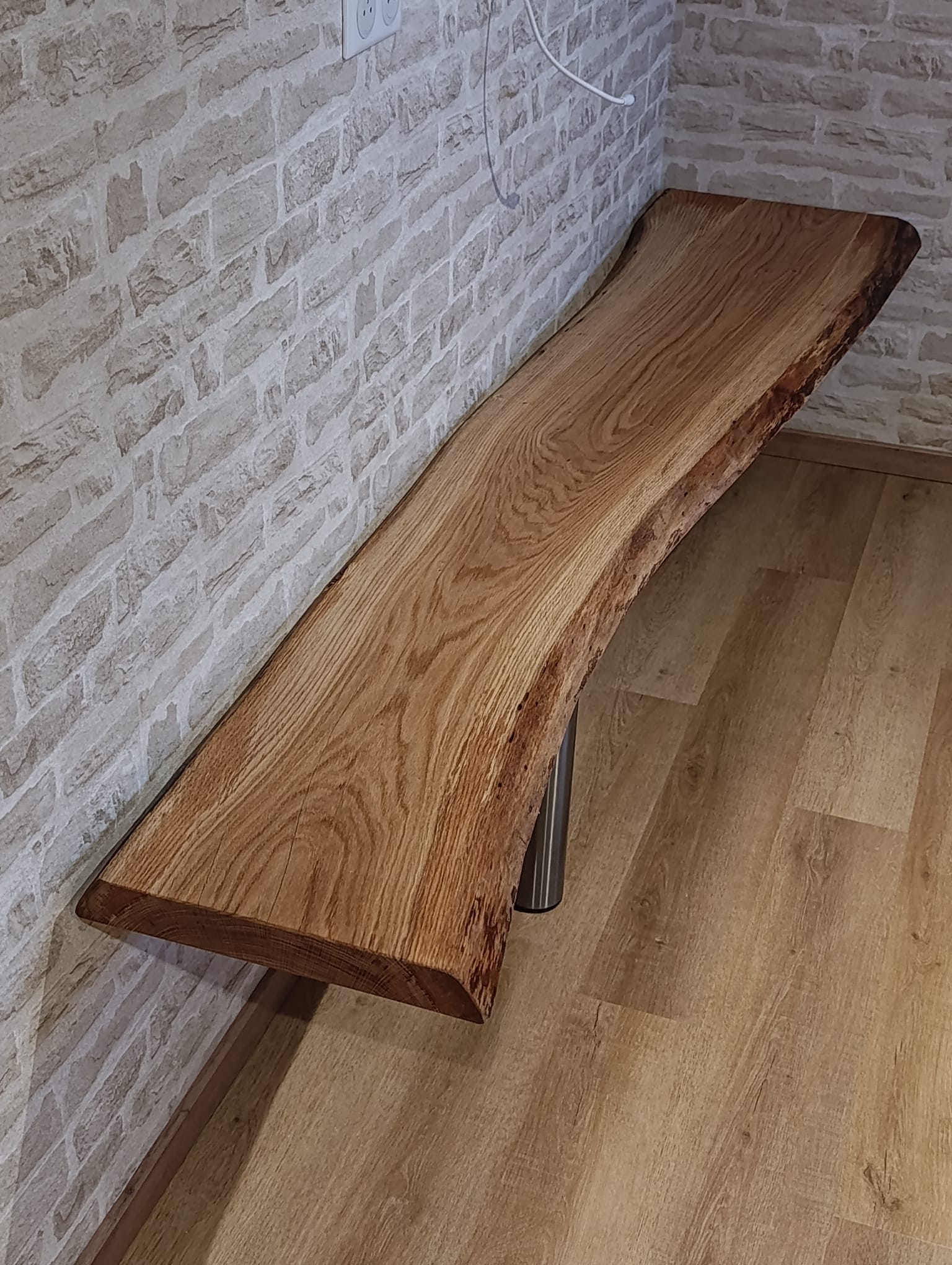 Dressing en chêne lamellé collé et colonnes en contreplaqué pin