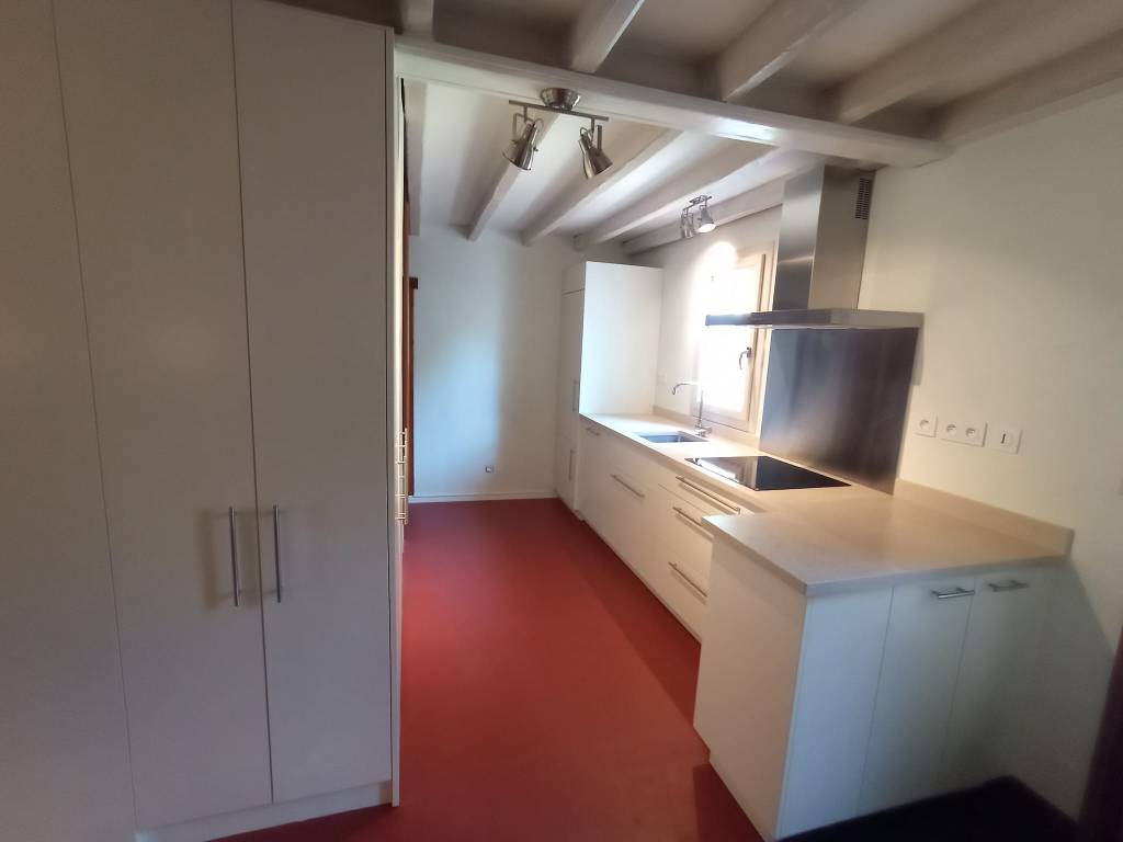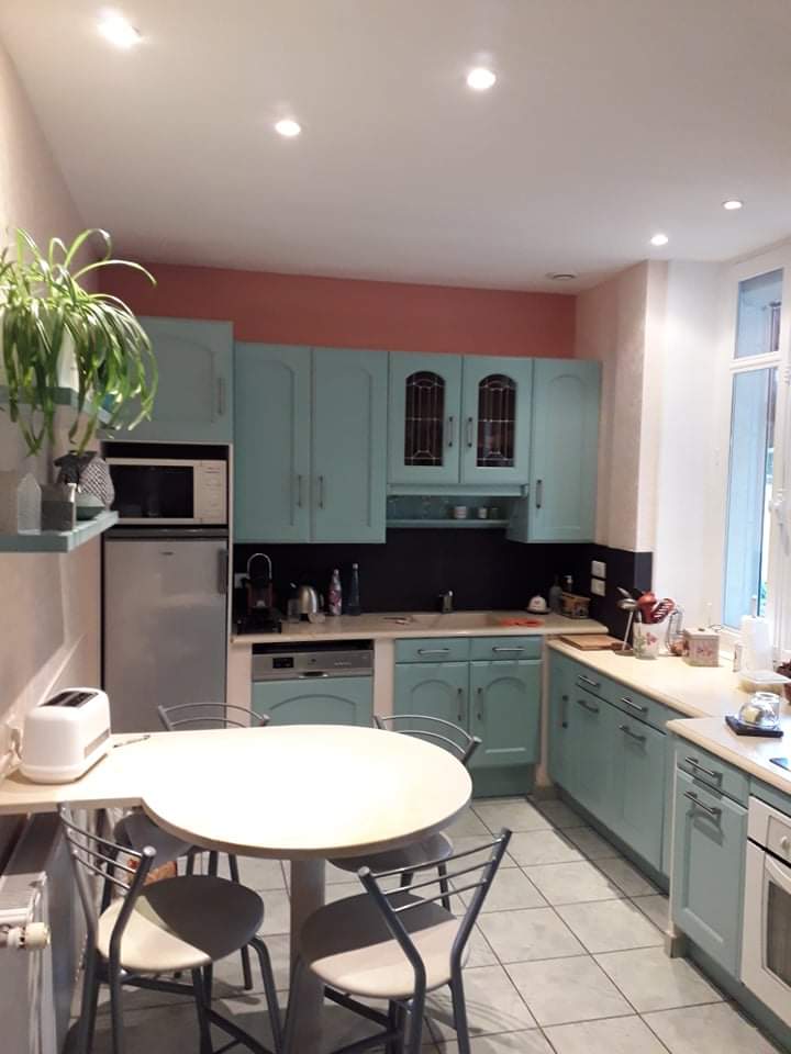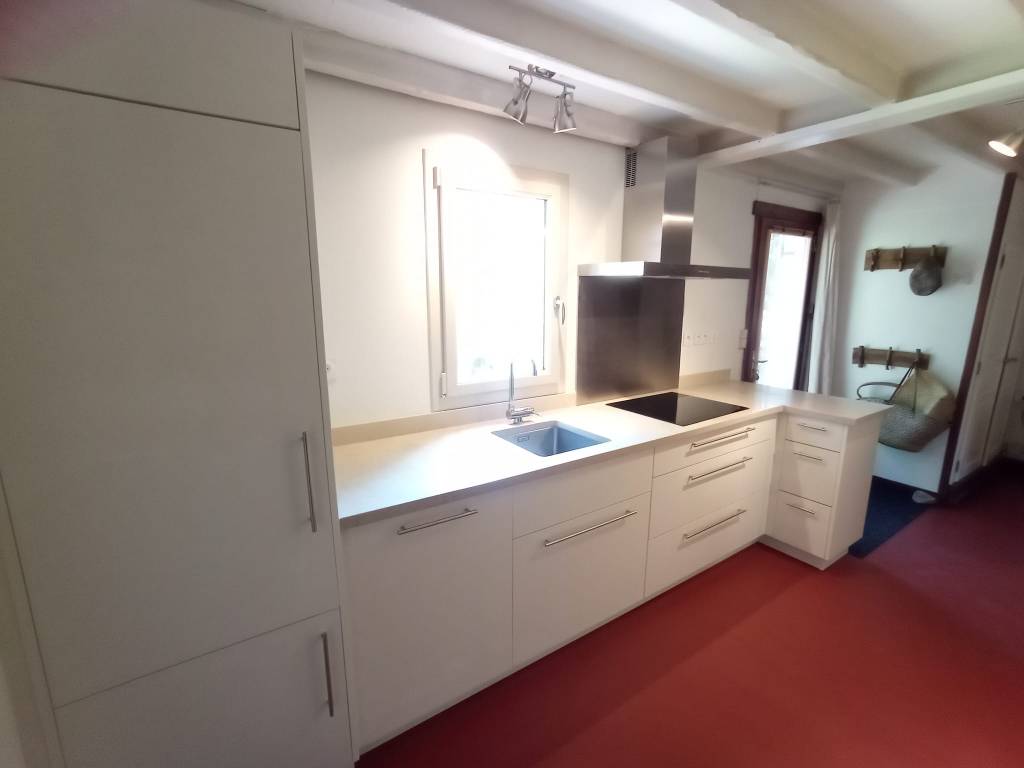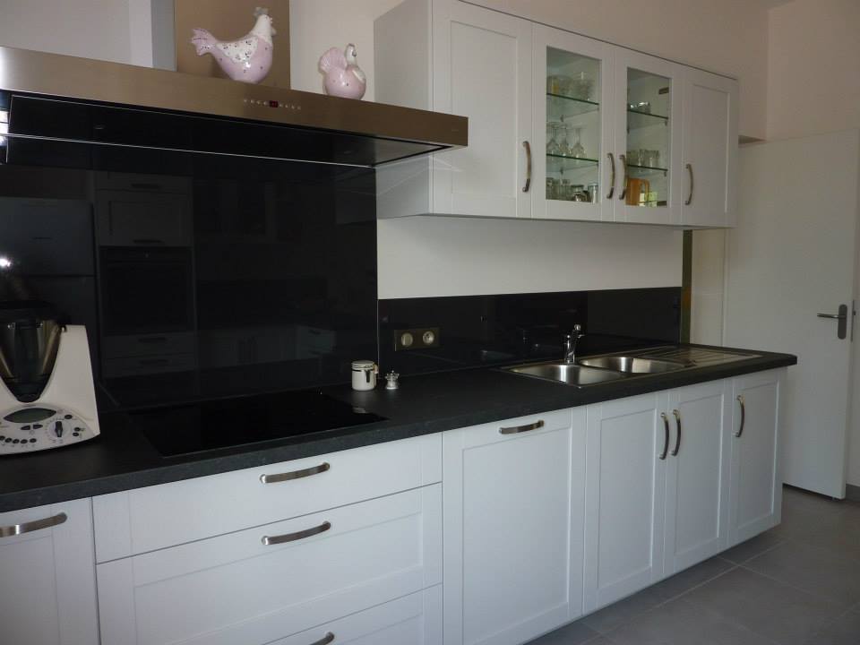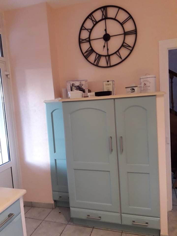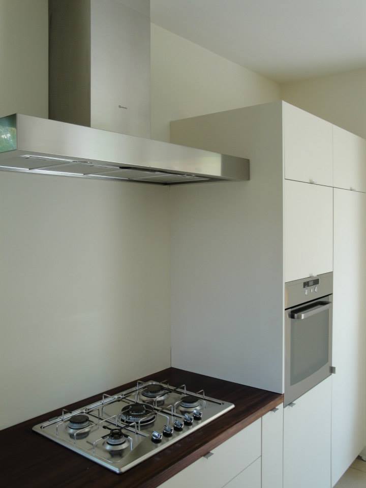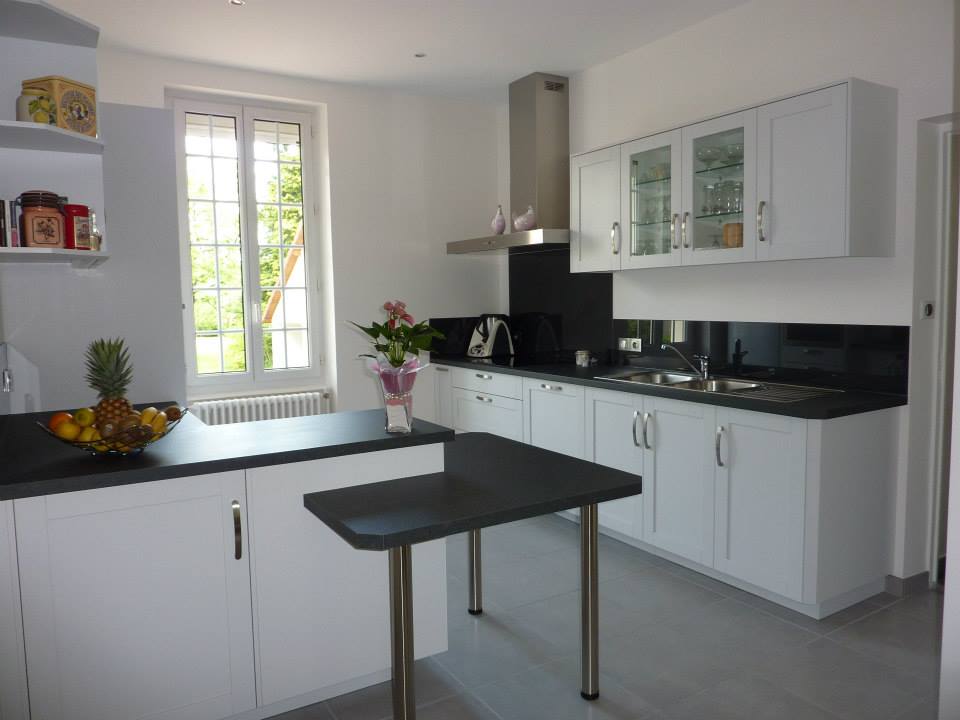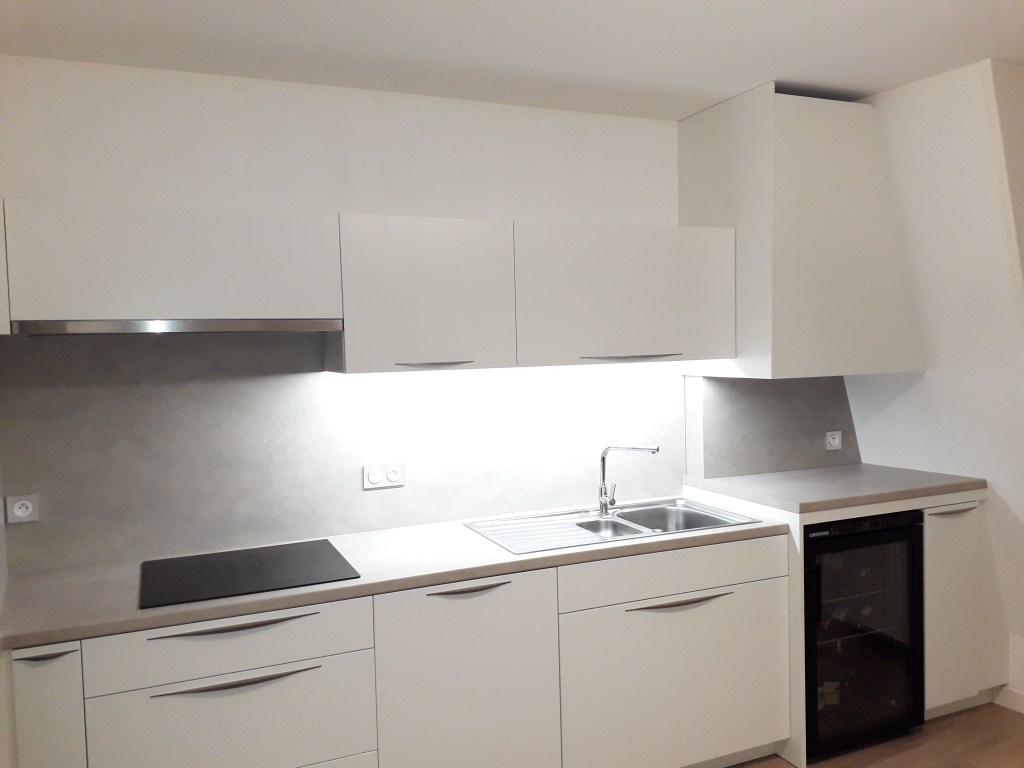 Cuisine en stratifié blanc cassé – plan de travail en Padouk