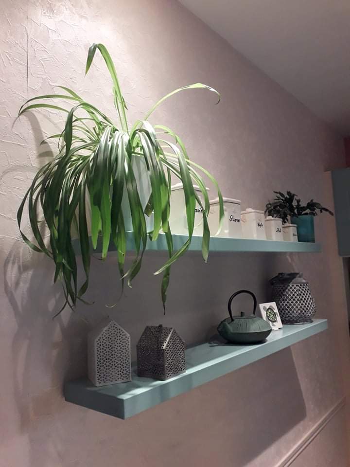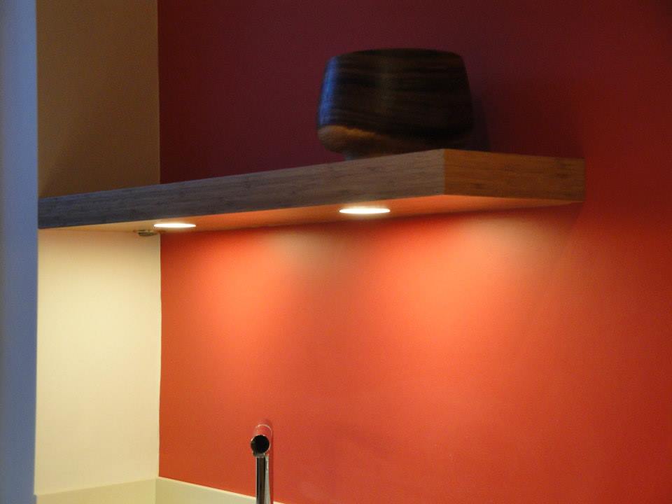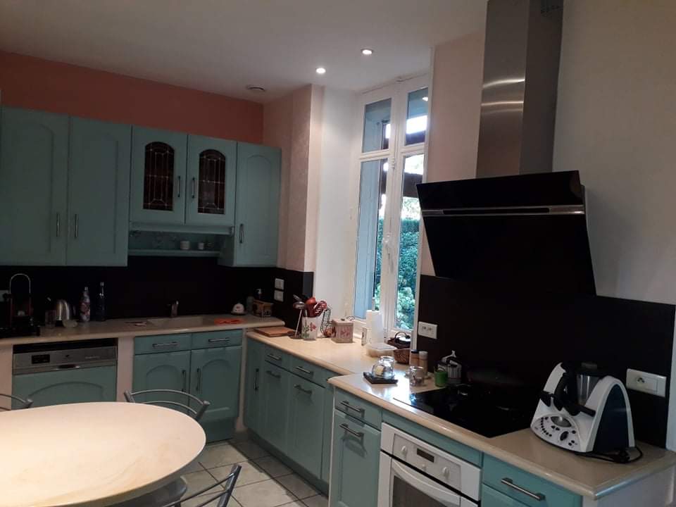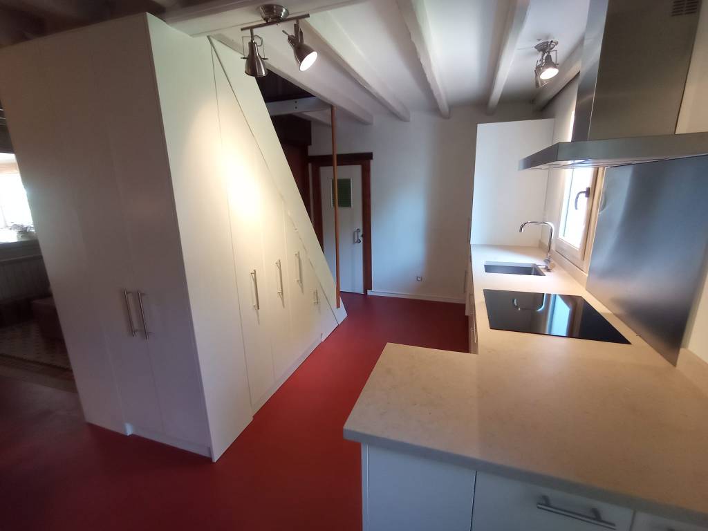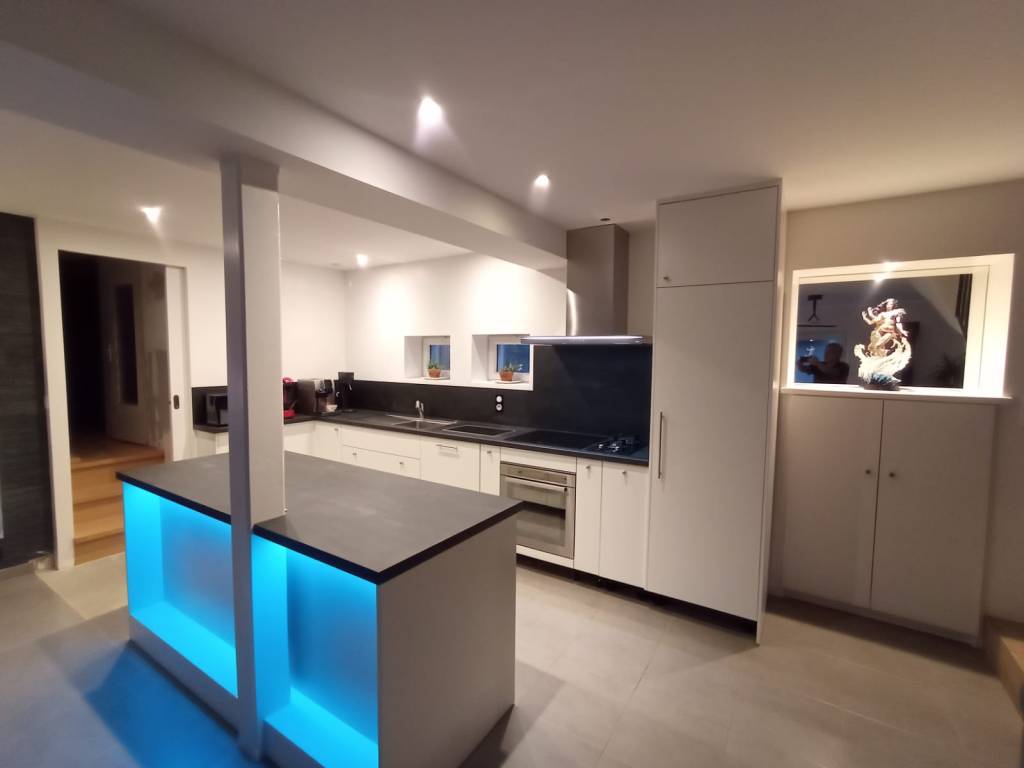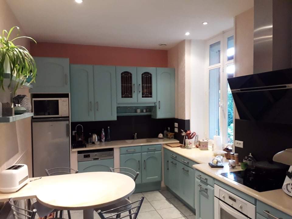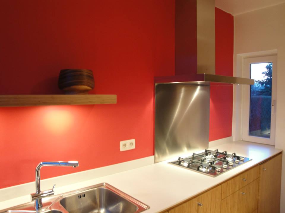 Cuisine en stratifié blanc cassé – plan de travail en Padouk