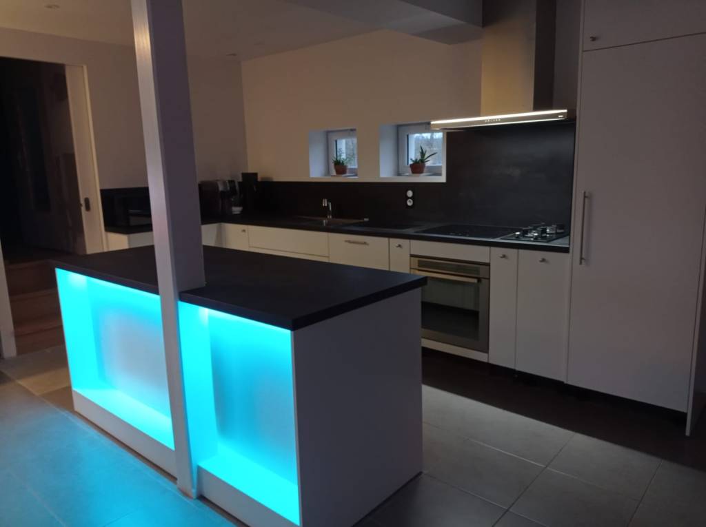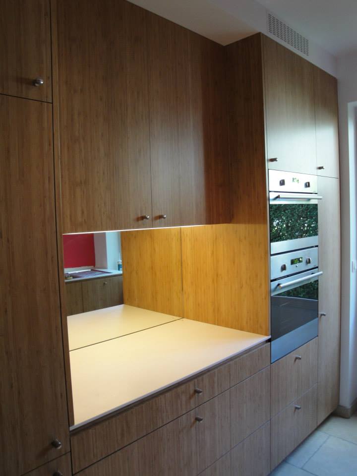 Cuisine en Bambou caramel – plan de travail en Solid Surface