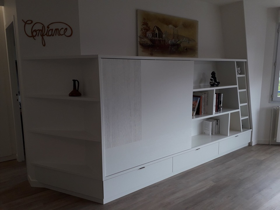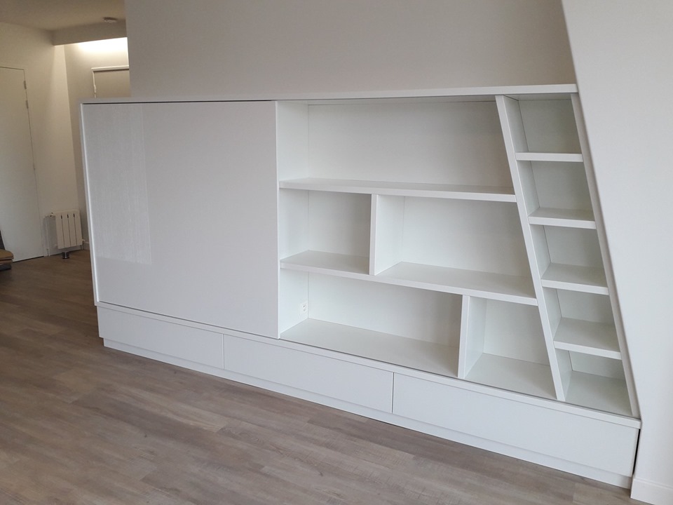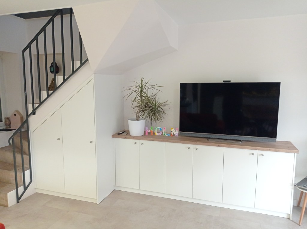 Meuble TV et agencement sous escalier