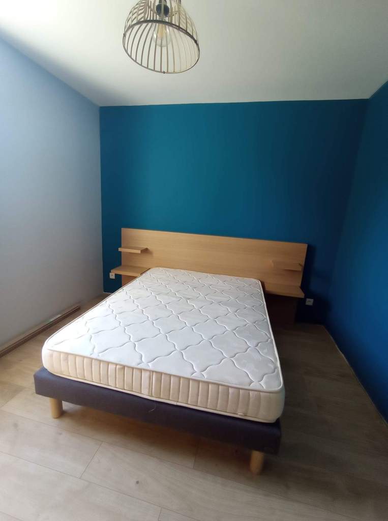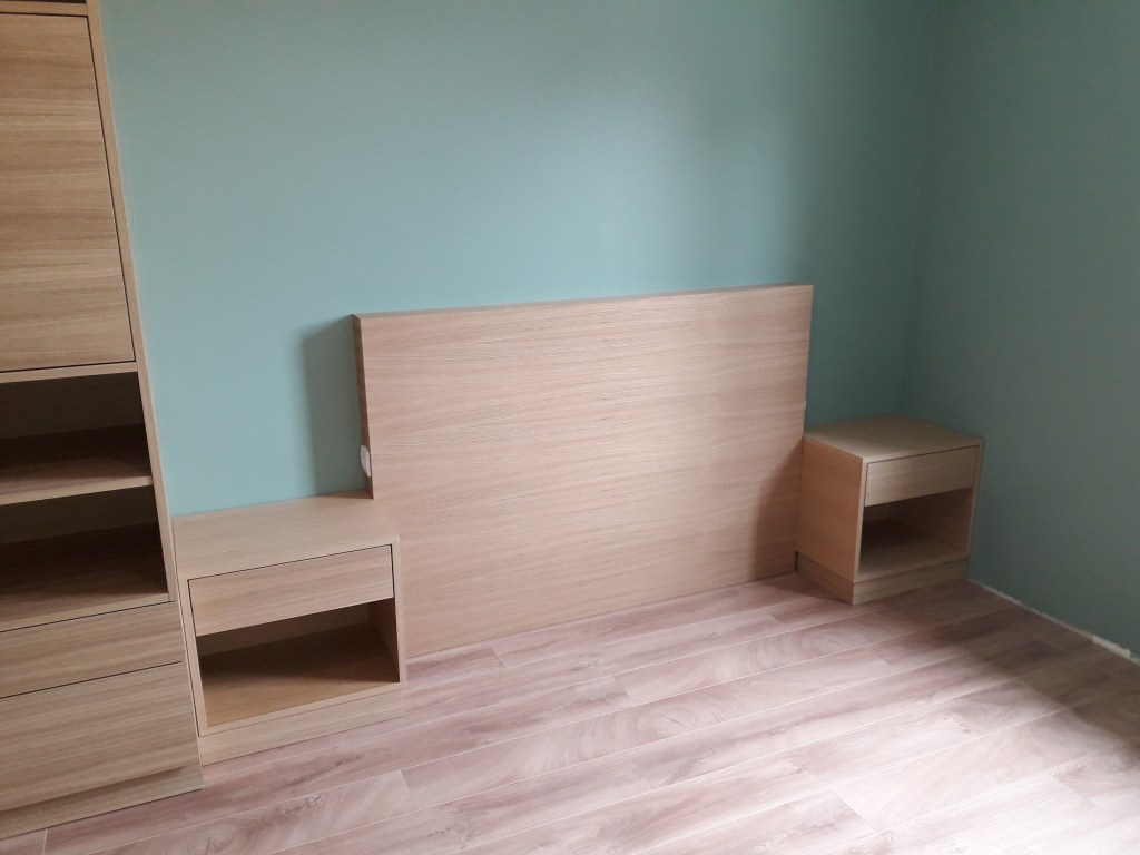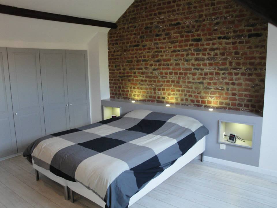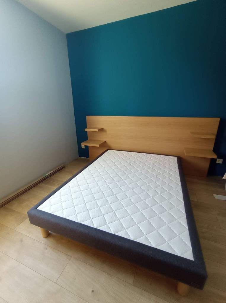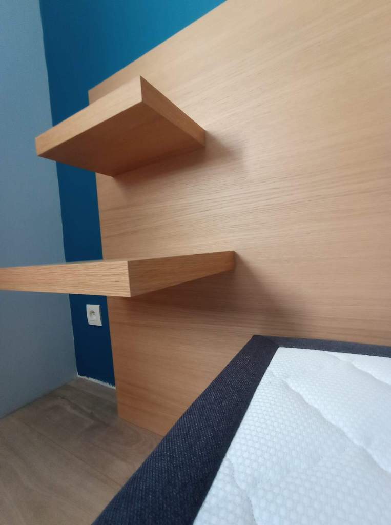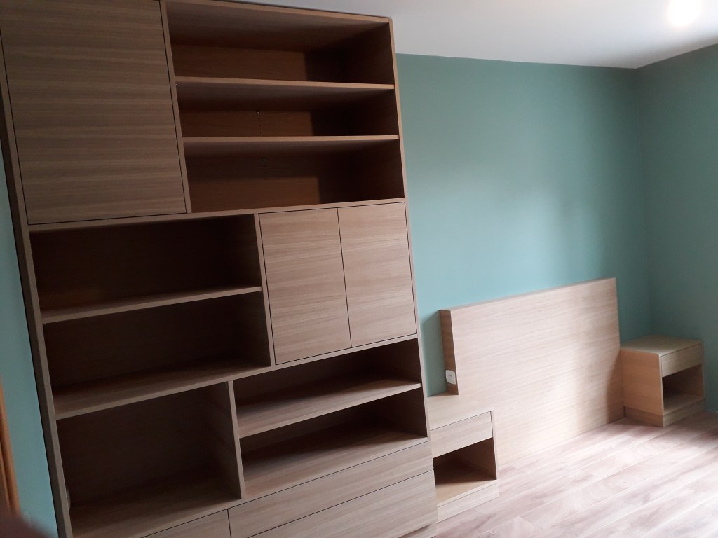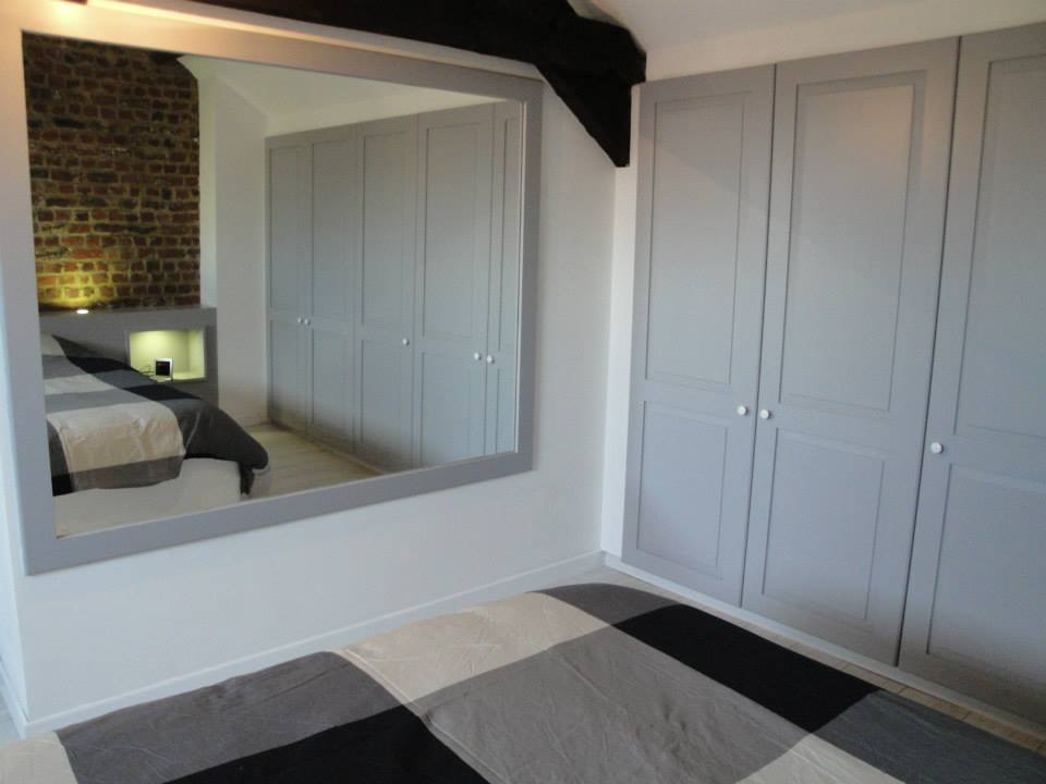 Ensemble tête de lit avec niches intégrées, dressing en sous pente, miroir