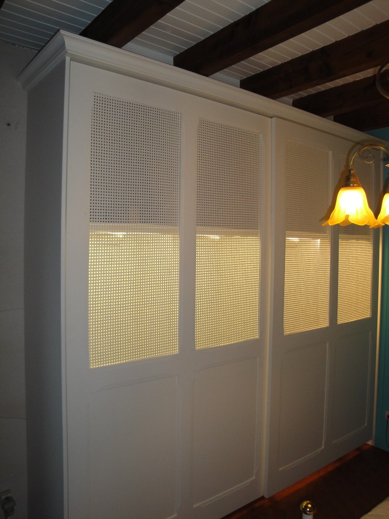 Agencement de dressing et cache-radiateur en cannage