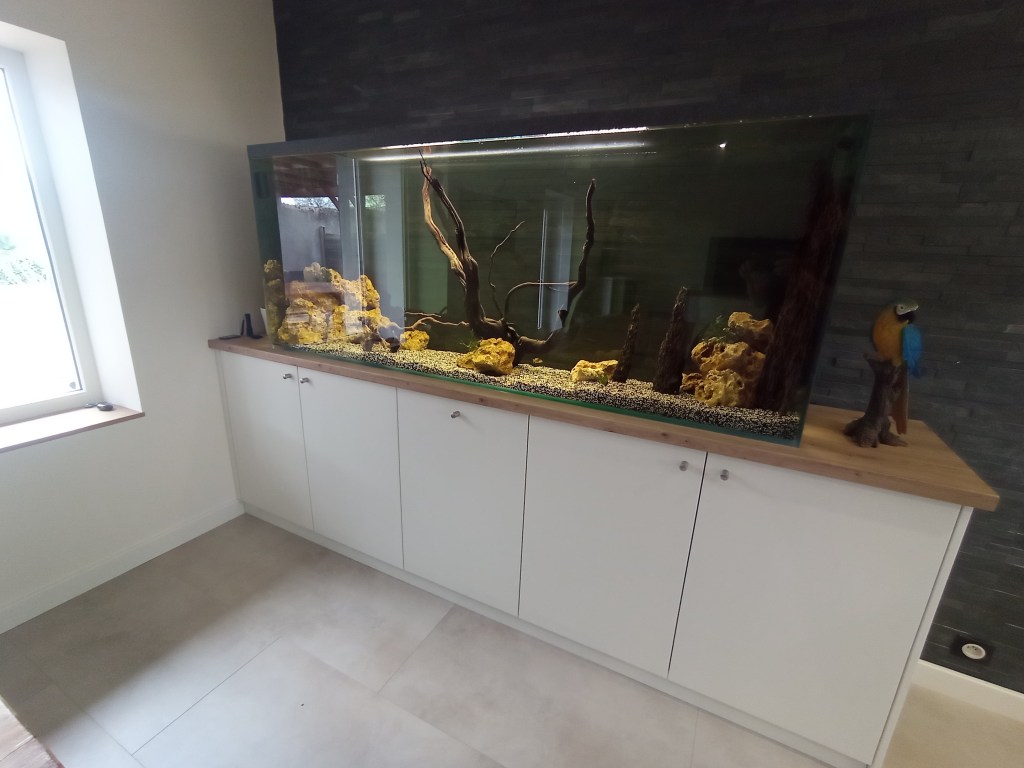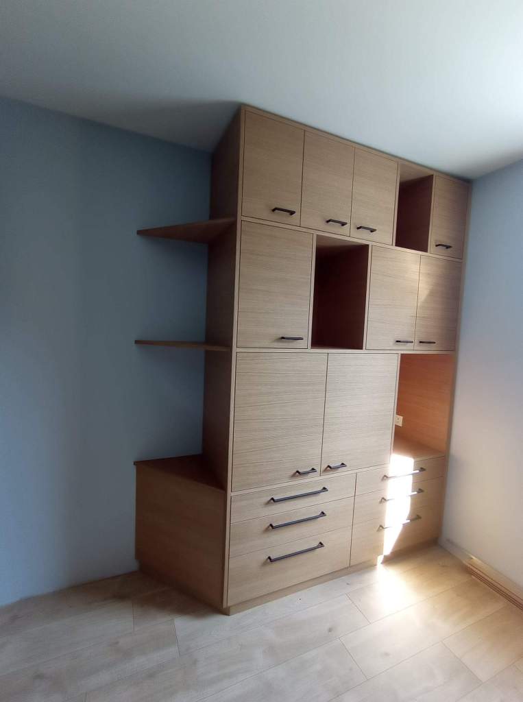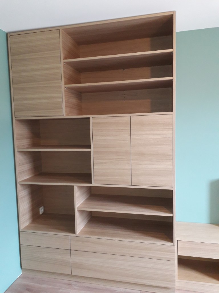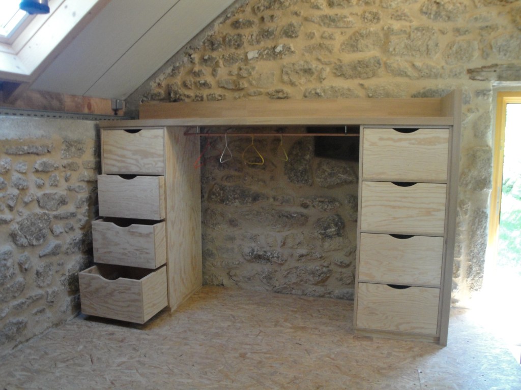 Dressing en chêne lamellé collé et colonnes en contreplaqué pin